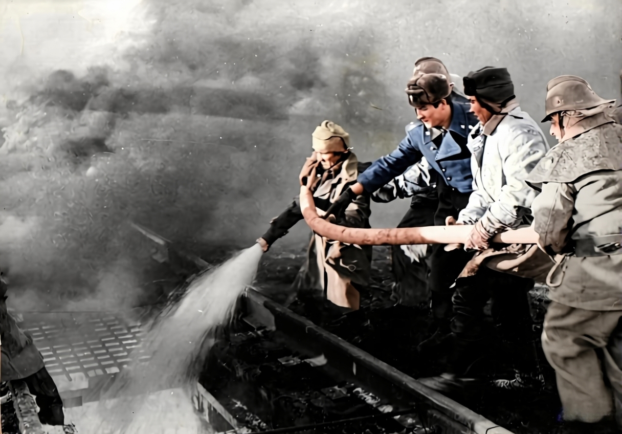Работать приходилось в защитных средствах. Однако пожарные, понимая всю грозящую им опасность, упорно стояли на передовых позициях, преграждая путь огню. Лишь через восемь часов напряженной борьбы с ним обстановка позволила начать восстановительные работы.