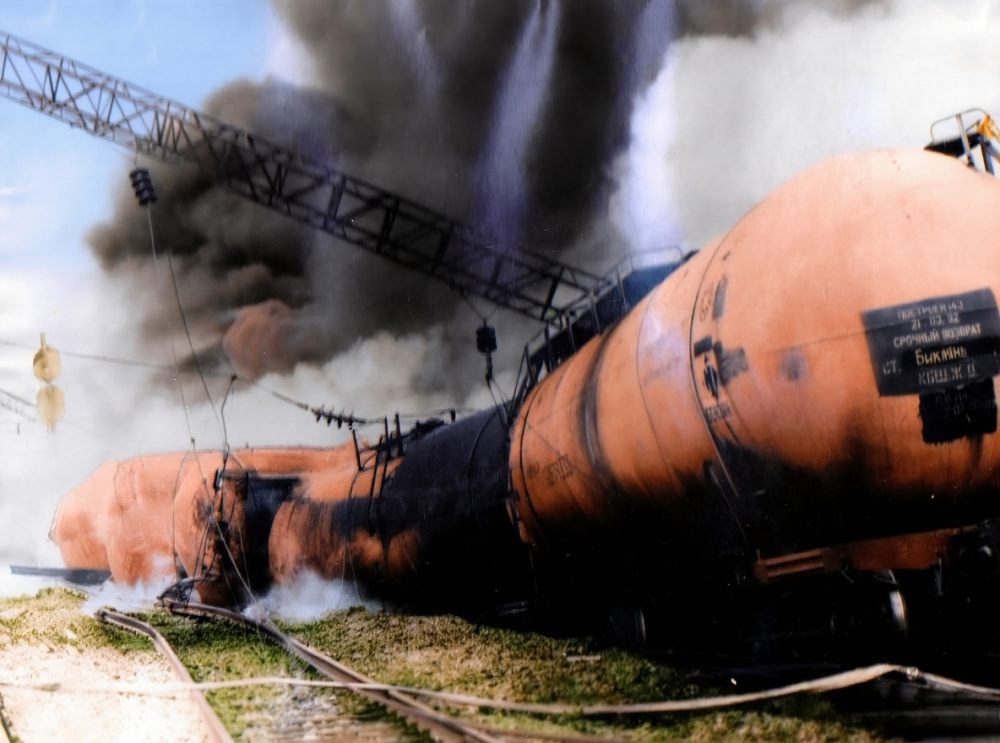 Тяжелым испытанием для пожарных Чувашии стала ликвидация масштабной техногенной аварии, произошедшей почти 30 лет назад на железнодорожном разъезде у поселка Мыслец в Шумерлинском округе. В мае 1996 года здесь сошел с рельсов грузовой состав. Из покореженных цистерн вылились и загорелись десятки тонн дизтоплива и фенола.