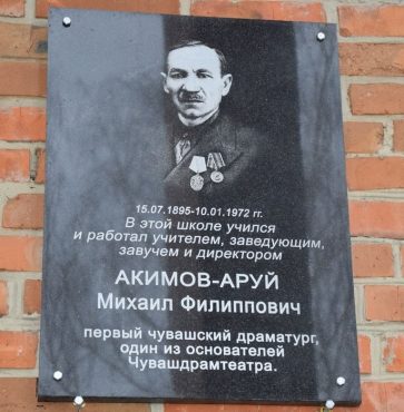 Михаил Акимов-Аруй родился в селе Новые Айбеси Буинского уезда (ныне Алатырского муниципального округа Чувашии), где в 2019 году была открыта мемориальная доска. Фото из архива чувашского драмтеатра
