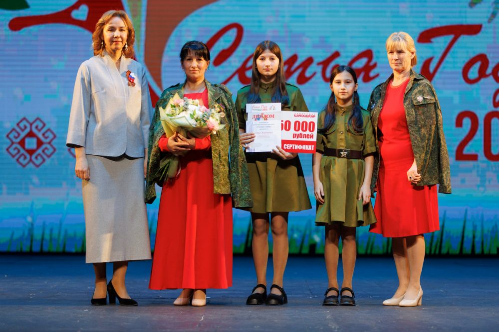 Особое внимание в этот день было уделено тем, кто создает основу общества. На сцену пригласили победителей республиканского конкурса «Семья года — 2025», в котором участвовали 129 команд со всей Чувашии. Лучшими были признаны Алякины из Красночетайского округа.
