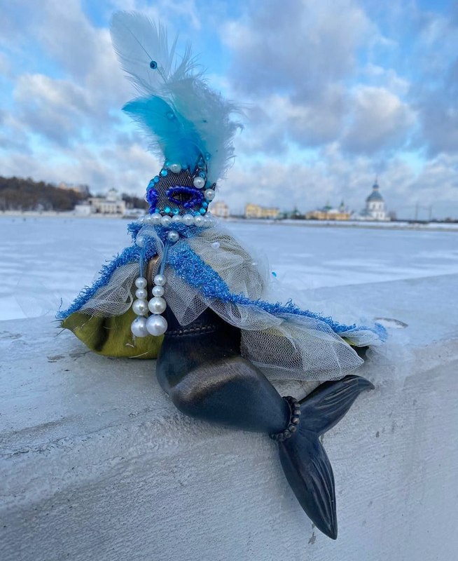 Каждая из трех фигур была одета по-особенному. Сказочно-волшебное облачение создали для «Волжской русалки», в ее костюме отражены далекая Италия и краски Венецианского карнавала в воздушных кружевах, как морская пена.