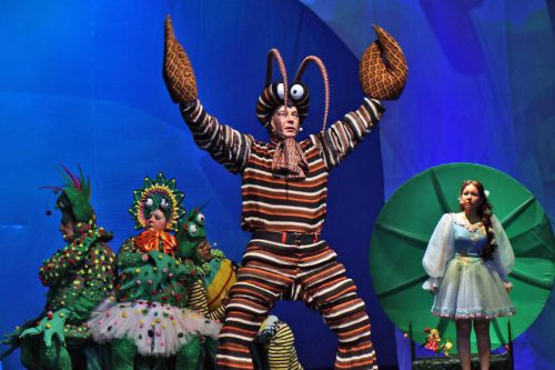 Декораций в спектакле немного, художник Игорь Торбеев обходится парой гигантских цветов, троном в виде бутона и листом кувшинки. Зато активно используется мультимедийная проекция, что помогает режиссеру Андрею Красноусову быстро менять место действия и перемещать персонажей в пространстве.