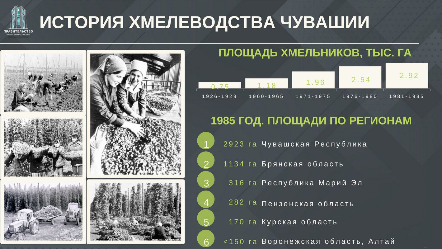 История чувашского хмелеводства — это история впечатляющих взлетов и тяжелых падений. В советский период отрасль достигла небывалого расцвета: если в конце 1920-х годов под хмельником было всего около 750 гектаров, то к середине 1980-х площадь насаждений выросла до рекордных 2,92 тысячи гектаров, что выводило Чувашию на первое место в стране. Однако последовавший за распадом СССР системный кризис привел к катастрофическому сокращению: к 2015 году оставалось лишь 99 гектаров плодоносящих хмельников, а количество специализированных хозяйств уменьшилось со 170 до шести. Казалось, уникальная отрасль была утрачена навсегда.