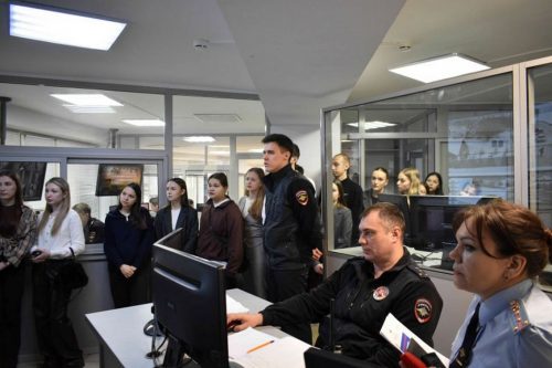 После встречи с Александром Темновым студенты посетили Центр управления нарядами. Через камеры видеонаблюдения участники акции посмотрели, как полицейские обеспечивают безопасность горожан во время крещенских купаний.