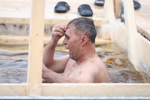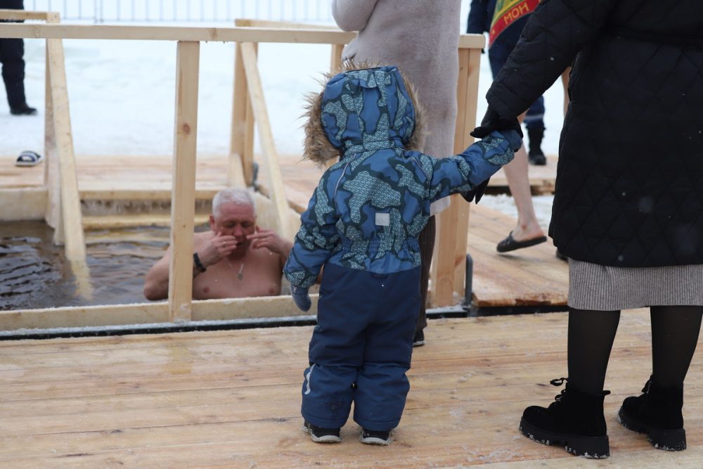 Среди посетителей мест для купаний не только те, кто желает окунуться. Кто-то приходит поддержать родных, а кто-то — просто посмотреть и «порадоваться за людей». Так, Сергей Корнилов выбрался к купелям, чтобы познакомить своего сына с народной традицией. Он считает, что, хоть важно окунаться в воду с головой для очищения мыслей в следующем году, неправильного способа здесь нет — совершить омовение можно и в ванной. В этот день вся вода считается целительной, даже проточная.