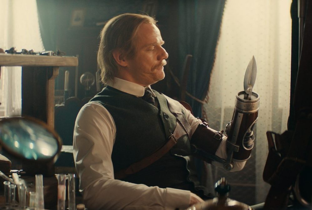 От драматической повести Лескова — лишь прозвище главного героя, образ блохи да несколько фраз. В остальном это масштабно снятый технологический блокбастер (в Сети его уже прозвали блохбастером) о том, как Британия с помощью своей шпионской сети пыталась свергнуть императора Александра III, посеять панику, погрузить Россию в хаос. Но мастер из Тулы Николай Семенович Сурин в исполнении Юрия Колокольникова и офицер сыскной полиции Петр Огарев (Федор Федотов) помешали коварным планам англичан.