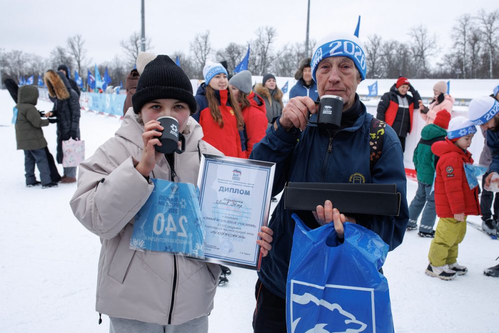 По итогам забегов самые пожилые и маленькие лыжники получили в подарок термосы от политической партии «Единая Россия». Петр Иванович Иванов сразу же воспользовался своим призом. «Очень понравился подарок — душу греет, — признался 81-летний пенсионер. — Я увлекся лыжами еще во время службы в армии. Сейчас катаюсь в лесу рядом с питомником».