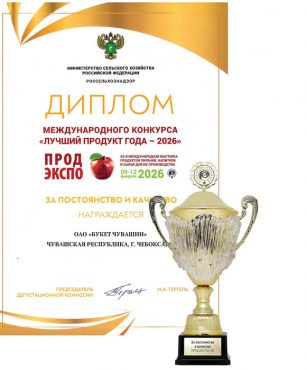 И вновь ОАО «Букет Чувашии» не только представило свою продукцию на главном продовольственном форуме страны, но и с триумфом вернулось домой. В рамках выставки традиционно прошел престижный конкурс «Лучший продукт года — 2026», где компания заявила о себе в полный голос, завоевав сразу три золотые медали!