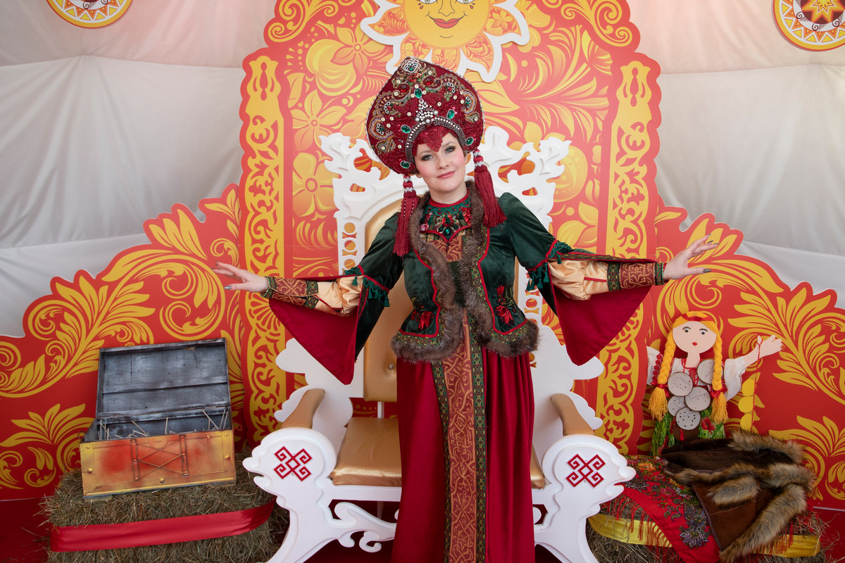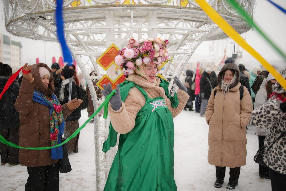 «Так зиму мы еще никогда не провожали», — говорили девушки в ярких расписных платочках и нарядных сарафанах, делая памятные фотоснимки на фоне елочек, украшенных ленточками и баранками. «Ах, ну что за Емеля на печи с щукой», — смеялись студентки, наперебой снимая на телефоны молодого человека в шапке-ушанке, валенках и шароварах на фоне большой тематической декорации.