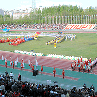 Уже сама церемония открытия соревнований на стадионе «Олимпийский» по яркости красок, пожалуй, затмила многое, что до сих пор приходилось видеть здесь жителям республики. А
