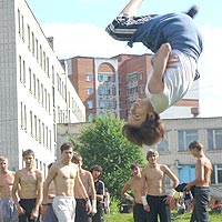Днем позже в Чебоксарах состоялась другая спортивная акция (на этот раз с элементами здорового экстрима), которая собрала примерно тысячу фанатов паркура или сторонников побегать-попрыгать в стиле героев культовых французских фильмов «Ямакаси» и «13-й район». Полем этой организованной общественным движением «НАШИ» битвы под названием «Открытый молодежный фестиваль «No limits» (что можно перевести как «Беспредел») был избран стадион вечерней школы № 7 на улице Т. Кривова. И участие в событии приняли паркурщики Чувашии, Марий Эл, Нижегородской области.