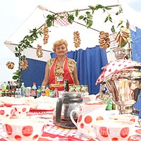 Впрочем, и чаевникам пришлось довольствоваться малым. К заявленному времени на поле стоял лишь один чайный столик, сервированный пластиковыми стаканчиками. В эту одноразовую посуду милые девушки в хирургических перчатках