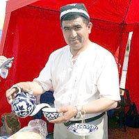 Настоящим свежезаваренным листовым чаем, разлитым в красивые сервизные чашки, угостили мастера азербайджанской, татарской и узбекской кухни, которые раскинули свои палатки несколько позже. Чай с горными травами, сухофруктами, восточными сладостями запомнился многим.