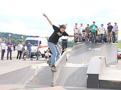 Вскоре, правда, дождь остановился, и обрадованные этим собравшиеся (включая приезжих профи) учинили соревнования по скейтборду «без выкрутасов» – среди любителей. Потом последовали раздача автографов, коллективный поход в баню, активный отдых, отправка в следующий пункт турне – Казань. Как бы то ни было, выступлением «циркачей» в Чебоксарах все остались довольны.