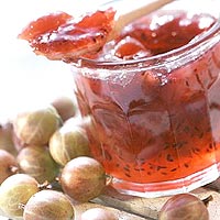 Ягоды крыжовника промыть, залить 1/2 стакана кипятка и варить под крышкой до 10 минут на медленном огне. Протереть через сито, добавить мед, ванилин, охладить.