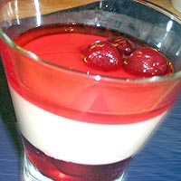 Вишню промыть, удалить косточки, выжать сок. Выжимки залить водой и варить 2-3 минуты, настоять 30 минут, процедить, положить сахар, предварительно замоченный желатин. Довести до кипения, долить выжатый сок, хорошо перемешать, разлить в формы для застывания.