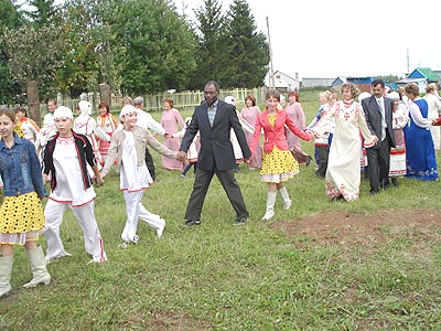 Когда женщины склонились над кадушкой готовить медовуху и запели старинную чувашскую песню, показалось, что выходец из жаркой Африки тоже запел. Наверное, вспомнились ему родные напевы. Когда ковш с напитком пошел по кругу, началось народное гуляние с песнями и плясками.
