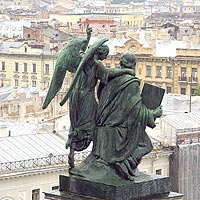 Валентин Богдеско – петербургский художник. Его отец – график и каллиграф Илья Богдеско – хорошо известен всем, кто хоть что-то знает про искусство рисования. Сын знаменитого отца тоже закончил факультет графики в Институте им. Репина, трудился в худфонде, занимался и графикой, и монументальным искусством, и реставрацией. Успел в начале девяностых годов поработать в Прибалтике, организовав там в художественной школе гончарную мастерскую для детей. Друзья называют его человеком неукротимой энергии и силы, с редким чувством красоты. «Досконально зная все улочки, переулки, дома, с фотоаппаратом и своим неизменным рюкзачком, он своим стремительным шагом исходил уже, наверное, сотни километров по мостовым Петербурга, – рассказывает о своем друге чебоксарский художник Виктор Бритвин, организовавший выставку его работ в Чебоксарах. – В неутолимом желании объять взглядом весь этот прекрасный мир, неисправимый романтик, он любит забираться на крыши, мальчишеской ловкости, озорства и бесстрашия ему не занимать! Оттуда взору открывается другой Петербург – Петербург мансард, крыш, куполов и шпилей. Городской шум и суета остаются внизу, а воздух наполнен шелестом птичьих крыльев, балтийским ветром, и – огромное, изменчивое и прекрасное северное небо смотрит сверху на творение Петра».