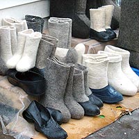 Валяльный сезон в семье – с ноября по февраль. Шерсть закупают у односельчан по 80 рублей за килограмм. На пару полуваленок уходит 1,2 кило, полных валенок – более полутора. Продают же полуваленки по полтысячи рублей пара, полные – еще дороже. За день можно свалять две пары. Правда, и работать надо часов по 12, потом еще обжечь изделия в печке.