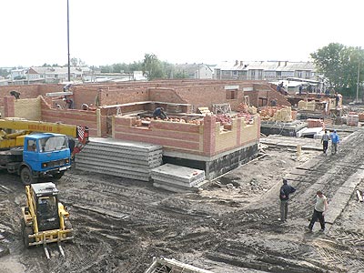 Темпы работ на стройплощадке впечатляют, ведь лишь в конце июля на градостроительном совете Минстроя Чувашии был рассмотрен и утвержден эскизный проект. Сейчас строители ведут кладку стен первого этажа и проводят наружные инженерные коммуникации.