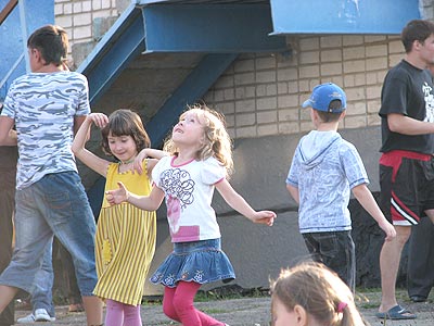 Это мероприятие собрало самых активных и заинтересованных жителей микрорайона “Горьковский”. Взрослые расположились на скамейках или степенно прогуливались в ожидании, пока начнется действо. А ребятишки выделывали под музыку пируэты вокруг украшенной сцены, установленной на стадионе школы № 29.