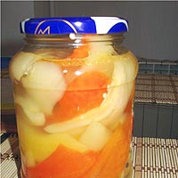 дольками, уварить до половины первоначального объема. Добавить соль, сахар, масло. Когда соль и сахар растворятся, ввести в массу порциями лук и перец. Довести смесь до кипения и сразу же разложить в литровые банки. Стерилизовать в кипящей воде 40 мин.