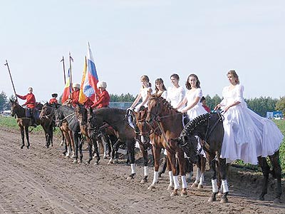 В небо взвился флаг республиканских конноспортивных соревнований. «Хотя по доброй традиции уже в пятый раз мы проводим их на ядринской земле и посвящаем памяти легендарного начдива Василия Чапаева и славного летчика-космонавта Андрияна Николаева, каждый раз волнительно, – признался глава района Евгений Яранский. – Все-таки не только итог жатвы подводим. Это здорово, когда людям можно в глаза открыто взглянуть: не обманули мы их, дали поработать и хорошо заработать. А теперь еще и учимся с размахом отдыхать. Кто работает, старается, у того и завидный результат. Здесь живут люди, которые любят свою землю, дорожат ею».