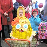 Лучшим декораторам колясок достались сертификаты в компьютерный салон и детскую пиццерию, игрушки, красочные книжки. В основной группе победу праздновала семья Мазюковых. Двух сыновей-близнецов мама привезла на конкурс в коляске, украшенной воздушными шарами, игрушками и патриотичными плакатами. А в номинации игрушечных колясок приоритет был отдан семье Степановых, переоборудовавших «кукольный транспорт» дочки в гнездо для цыпленка.