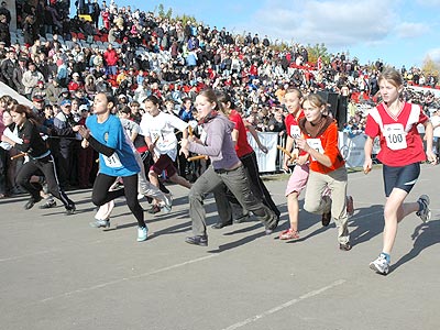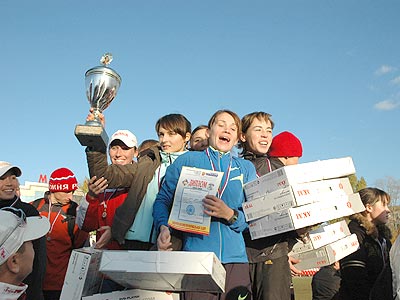 А на беговую дорожку тем временем уже двинулись спортивные семьи. Здесь явным фаворитом выглядело трио Скворцовых (Московский район Чебоксар). Ведь в него вошли папа Александр – экс-чемпион России в беге на 1500 м, мама Сильвия – серебряный призер недавнего международного марафона в Сент-Поле (США), 8-летняя дочь Диана – победительница республиканского этапа «Кросс наций-2008». Естественно, Скворцовы в пятый раз подряд оставили за собой первенство. Однако фотокорреспонденты больше всего суетились возле другого финишера – Илюши Ильина под №18. 3-летний член семейной команды сотрудников ЧГУ набрал столь шустрый ход, что «тормозившей» его маме Надежде едва удалось ухватить собственное чадо. «Мама, я чемпион, да?» – невинно поинтересовалось при этом дитя. «Конечно», – ответила та и ласково пошлепала малыша по попе.