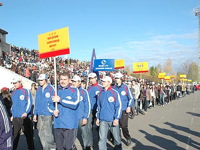 На дорожку нескончаемыми волнами посыпали учащиеся школ, училищ, ссузов, студенты вузов. И над трибунами завис мощный гул шумных групп их поддержки. «По предварительным данным, для участия в эстафете зарегистрировались 3006 человек, или 406 команд, – сообщил судья-информатор. – Это абсолютный рекорд данных соревнований всех времен!» Заодно выяснилось, что приз «За массовость» достался ЧГУ, отправившемуся покорять стадион «Спартак» аж 28-ю разными командами. Ну а наиболее умудренными жизнью покорителями эстафетных пространств признали 63-летнего Геннадия Арсентьева («Водоканал») с Апполинарией Владимировой (клуб любителей бега «Элара»), разменявшей седьмой десяток.