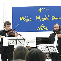 программы «Музей. Музыка. Дети». Музыканты исполняли небольшие классические произведения, а вел концерт руководитель Центра музейной педагогики Государственного Русского музея Борис Столяров. В перерывах он немного рассказывал ребятам о каждом музыкальном произведении, спрашивал, какие образы вызывает у них услышанная мелодия. А еще попросил одного из исполнителей рассказать, как научиться так виртуозно играть на скрипке. Когда юные слушатели узнали, что заниматься приходилось и по шесть часов в день, дружно решили, что лучше уж они будут просто слушать музыку. Но поиграть ребятишкам из первого ряда все-таки удалось — на трещотке во время заключительной пьесы.