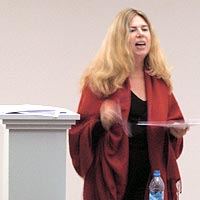 Это первое в наших краях выступление мастера поэзии превращений. Знатоки приписывают Азаровой ни много ни мало изобретение свежих шифров авангарда. Она возводит настоящие словесные замки с затейливой и одновременно четко продуманной конструкцией. Недаром гостья приехала со своим авторским проектом «Дом для стиха», в котором ей помогает архитектор Алексей Лазарев. В художественном музее, где проходила первая встреча Н.Азаровой и А. Лазарева с любителями поэзии, они развернули перед собравшимися всамделишные архитектурные проекты, сделанные на основе строения стиха того или иного автора, с учетом его графического построения, звучания, ключевых слов и букв. Причем чертеж и эскиз «дома» выдается по всем правилам: с электричеством, канализацией, декором, условной меблировкой. Интерактивная реализация проекта дает возможность попасть внутрь дома-стиха, пройтись по комнатам, выйти на балкон или террасу. То есть это некий идеальный дом для автора, исходя из заложенной в строчках картины мира. Читателю это позволяет по-новому взглянуть на известные ему стихи. Такое филолого-архитектурное исследование и занимает минимум три месяца. Лазарев «построил» уже с десяток подобных домов для своих друзей-поэтов. Есть такой дом у москвичей и для Геннадия Айги. Кстати, свои тексты Айги часто сравнивал с крестьянским домом, в котором обязательно должна быть крыша-заглавие, а также дата и место написания – как ступеньки. Поэтому даже без заглавия стихотворение остается под крышей – “Без названия”.