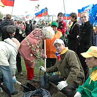 Эта акция собрала не только молодежь. В уголок Чебоксар, звучавший в тот день громко и радостно, подтянулось и старшее поколение, у которого в крови — быть всегда в гуще событий. Горожане почтенного возраста с удовольствием разделили с молодежью и прекрасное настроение, и трудовой настрой. Совместное дело — рождение сада — сплотило людей и разных национальностей, и разных возрастов.