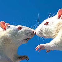 Ее муж по имени Пик был действительно прилежным семьянином и следил за детьми даже тогда, когда Машке удавалось удрать. Последний побег перешел все рамки приличия — Машка подгрызла деревянные опоры аквариума, одна из стен стала подвижной. Мышь протиснулась сквозь образовавшуюся щель и — была такова. Пик с оставшимся семейством из шести подросших мышат не двинулся с места. Через пару дней, изловив беглянку, я поместила ее в новую небольшую клеточку, а отца семейства с детьми в клетку побольше. Продержав нарушительницу в «изоляторе» три дня, я решила воссоединить ее с семьей. Но при этом провести «научный эксперимент». Поставила две клетки на журнальный столик и открыла дверцу у Маши. У отца семейства дверцу тоже приоткрыла. Надо сказать, что Пик не отличался особым проворством, как его супружница, да и мотаться по квартире был не склонен.