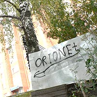 Хорошо, когда по дороге к фирме стоят указатели со стрелками, особенно если офис находится во дворах. Ведь не все в совершенстве знают город, и лишние подсказки совсем не помешают. Только вот, наверное, надписи должны быть более цивилизованными, чем черной краской да по куску забора. Возможно, этот указатель, находящийся на Московском проспекте, создан не самими сотрудниками фирмы, но можно же более тщательно следить за своим имиджем. Если подобное заборное творчество не напрягает владельцев интернет-провайдера «Orionet», то вряд ли оно придется по вкусу потенциальным клиентам. Все-таки сегодня достаточно большой выбор услуг в этой сфере, а как доверять тем, кто рекламирует себя столь кустарным методом.