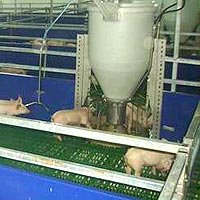 Несколькими днями раньше сюда была доставлена из Германии первая партия молодняка пород «ландрас» и «крупная белая». Путешественники хорошо перенесли дорогу и уютно размещены в оборудованных соответствующим образом помещениях. Два месяца их будут доращивать, потом еще столько же откармливать. А в феврале следующего года им придется проследовать на мясокомбинат.
