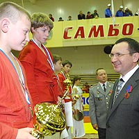 Естественно, что глава республики тоже не смог пройти мимо этого события, появившись в зале, где бушевали борцовские страсти, аккурат к церемонии награждения лауреатов. «Вы выбрали правильный стиль и образ жизни и поэтому многого добьетесь, – сказал боевитой молодежи Николай Васильевич, вручая медали. – Хорошо, что у вас есть такие соревновательные возможности и такие наставники, каких у нас в юные годы, увы, не было. А самбо – это наука защиты даже не столько физическая, сколько волевая, энергетическая. И я уверен, что занятия спортом помогут вам осуществить свои заветные мечты».