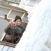 Ледниковый период для жильцов закончился с очередной сменой коммунальных работников — 1 февраля дом передали на обслуживание ООО «Деон». В минувший вторник плотники, переквалифицировавшиеся в ледорубов, ликвидировали нарост, висящий на балконах второго и третьего этажа. А ближе к вечеру к дому подогнали автовышку и отрубили верхнюю часть сосульки. Не обошлось без «жертв» — вместе с осколками льда полетели наземь и балконные стекла. Впрочем, главный инженер «Деона» Дмитрий Котенков пообещал жильцам заново остеклить балконы. Будем надеяться — слово сдержит…