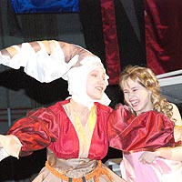 Художнику Ольге Ежковой, мастерице одевать сказочных героев, хватило и намека на средневековье, чтобы разгуляться с невиданными доселе на нашей сцене головными уборами. Здешние веронцы щеголяют и в серебристых шароварах наподобие тех, что носили инопланетяне в советских фильмах о веселых пришельцах. Все это делает их похожими на студентов тематической вечеринки, что тоже вносит в представление свою остроту.