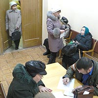 Обидевшийся за родную контору корреспондент «СЧ» тут же отправился в администрацию Московского района. В «предбаннике» перед кабинетом, где оформляют документы, не то чтобы столпотворение, но постоять в очереди придется. Оккупировав все столы, пожилые граждане заполняют бланки, рядом – листочки ксерокопий. Про новшество большинство визитеров узнали от соседей, родственников, друзей. От соседки услышала новость и инвалид Анна Рыбакова. И поспешила подавать заявления – за себя и за старенькую маму. «300 рублей будут платить, а столько нервотрепки», – вздыхает она. «Да выгодно им нас гонять – по два рубля заплатила за ксерокопию», – ворчит сидящая рядом пенсионерка. А для кого-то и заполнить бланк – проблема. 67-летняя Анна Николаевна Дмитриева просит помочь ей оформить документы. Сама и видит плохо (недавно перенесла операцию на глазах), и образцов никаких нет. Переживает – иначе, мол, денег за январь не дадут…