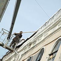 Очистка скатных кровель — удовольствие опасное и недешевое. Например, только вызов автовышки для доставки на верхотуру рабочей силы с шанцевым инструментом для скола наледи влетает в солидную копеечку — аренда «телескопического» устройства стоит в среднем тысячу рублей в час. Если учесть, что очистка крыши одного дома занимает до 3-4 часов, можно представить, в какую сумму обходится эта процедура собственникам квартир в домах со скатной крышей. По итогам прошлой зимы, сообщил Герольд Шатилов, директор МУ «Управление жилищным фондом г. Чебоксары», на очистку домов со скатными крышами было затрачено 1317 тыс. рублей.