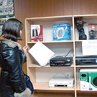 Магазин «Русское оружие», что по ул. К. Маркса, одно из четырех торговых заведений, где реализуется имущество, арестованное судебными приставами за долги. Корреспондент «ЧН» побывал здесь на «экскурсии» вместе с сотрудниками республиканского Управления федеральной службы судебных приставов. В тот день на продажу выставили такой «арестант» — газовая плита, стиральная машина-автомат, телевизор, микроволновая печь, колонки для компьютера, видеомагнитофоны. Когда мы пришли сюда же под вечер, уже многое было продано: и колонки за 250 рублей, и телевизор за 300, и микроволновка за тысячу.