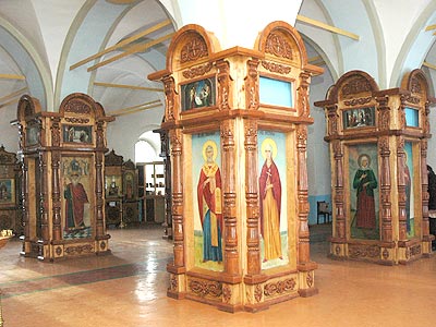 Как долго киоты будут стоять? Если соблюдается тепловой режим, заверил Юрий, то сотни лет. Во всяком случае, иконостас боится только сырости и тли. Но деревянная основа обработана со всех сторон. Кстати, вначале иконостас был низкий. Другой мастер работал, невысокого роста. Потом пришел Юрий и все переделал. Даже некоторые иконы написал.