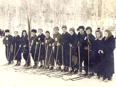 Вот решил выслать вам фотографию лыжников, конькобежцев и прыгунов с трамплина из сборной Ядринского района 1954 года на финальных соревнованиях общества «Урожай». (Мы тогда заняли первое общекомандное место.) И сразу вспомнил добрым словом наших наставников – председателя спортсовета района, мастера спорта Марию Гущину, Лидию Абакумову, преподавателя Ядринского ПТУ Владимира Еремина, который очень много сделал для развития физкультуры и спорта в республике. Часто вспоминаю и то время, когда после выступления на первенстве СССР среди техникумов 1965 года я был включен в сборную общества «Трудовые резервы» и больше месяца тренировался на главной спортбазе страны рядом с выдающимися лыжниками и биатлонистами. В том числе рядом с будущим олимпийским чемпионом Владимиром Воронковым (нашим, канашским). Такое не забывается!