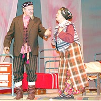 В субботний вечер Русский драматический театр пригласил на спектакль «Выходили бабки замуж» Флорида Булякова (режиссер-постановщик Станислав Васильев). Эмоционально зрителя качало, как на горках — от веселого смеха до трогательной слезы. Премьера этой постановки состоялась еще в марте 2004 года, но до сих пор люди с удовольствием ходят на комедию. Сюжет у нее жизненный.