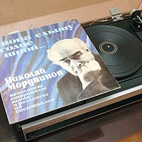 привезли проигрыватель на длинных ножках. «Думали, что он приобретен самим Мордвиновым, – сообщила директор музея А. Иванова. – Но оказалось, что аппарат принадлежал вдове Ольге Константиновне. После кончины мужа она любила слушать граммофонные записи. На одной из пластинок записаны народные песни, романсы в его исполнении. Кстати, Мордвинов хорошо играл на гитаре. Говорят, что он записал эти песни в домашних условиях. Пластинку используем при проведении мероприятий, а не задвинули в дальний угол шкафа. Хотя и очень дорожим сокровищем, и даже сдуваем пылинки. У нас есть документальный фильм, снятый о Мордвинове. И в нем звучат две песни в его исполнении. Поэтому чаще всего их даем послушать посетителям».