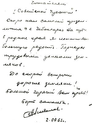 Когда началась эра полетов в космос, у молодежи было поголовное стремление быть космонавтами. Теперь ребята чаще хотят быть олигархами и моделями. Но радует, что в Чувашии с каждым годом набирает силу движение юных космонавтов. Мне, участнику Великой Отечественной войны, кавалеру двух орденов Славы, приятно осознавать, что память о первых покорителях Вселенной – Юрии Гагарине и Андрияне Николаеве и их космических братьях – живет в народе. Каждый год 12 апреля я прихожу к их памятникам в Чебоксарах. Вижу, как люди несут живые цветы к подножию.